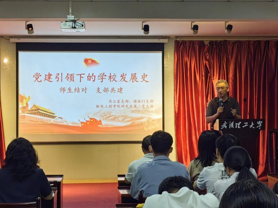 随后研究生党员何帆作“抗战时期教育救国历史”主题分享;东院老协余正建会长回顾了建校初期老党员、老教授为学校的建设和发展所做出的巨大贡献,并介绍了《武汉理工大学赋》的创作经历。