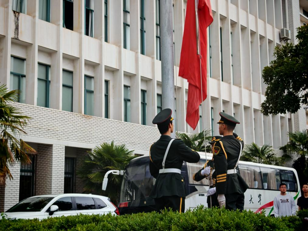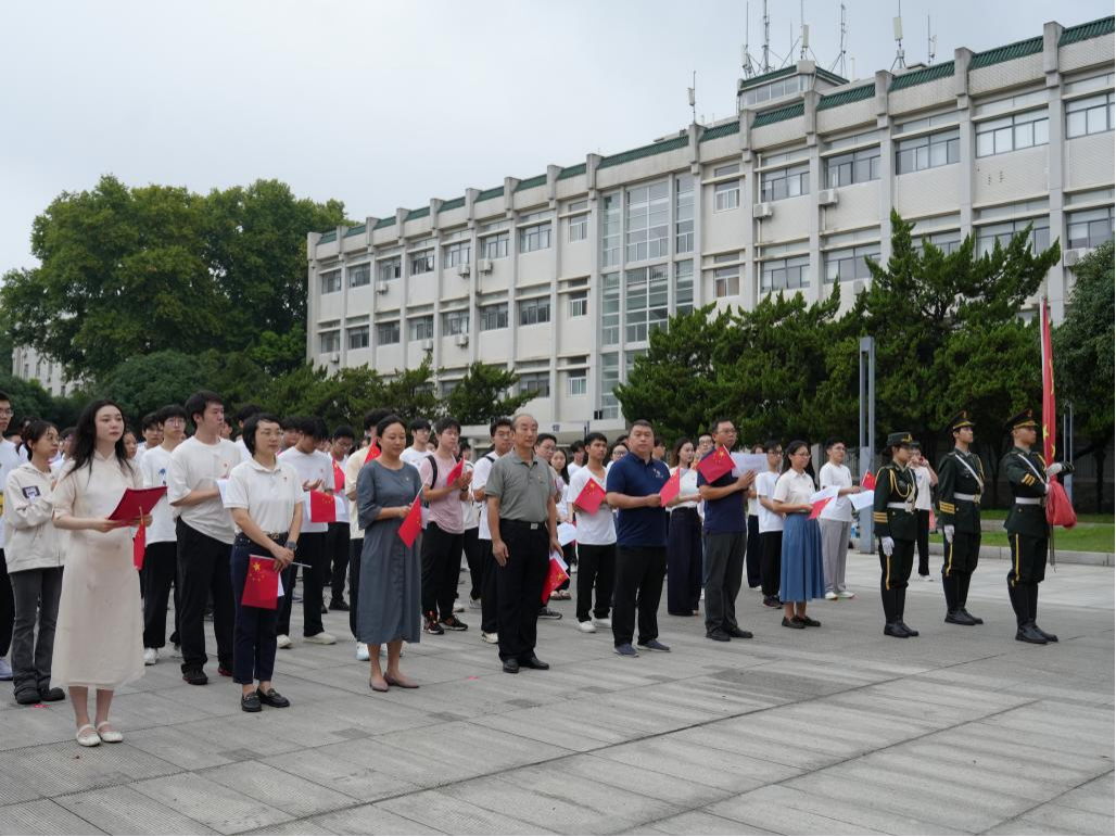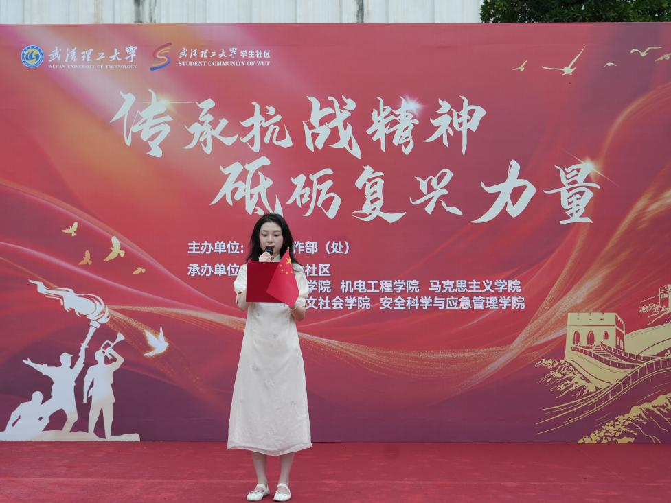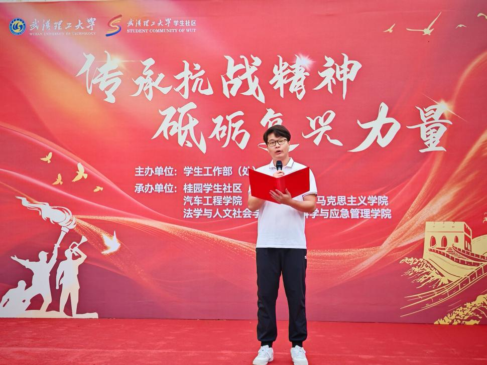 岁月鎏金,山河铭记,为纪念中国人民抗日战争暨世界反法西斯战争胜利80周年,9月1日7时,武汉理工大学桂园学生社区举办“传承抗战精神,砥砺复兴力量”国旗下的讲话活动,共同回望那段浴血荣光的历史,传承永不磨灭的民族精神。空军武汉基地老战士报告团团长张佑军、团员翟雨佳,党委研究生工作部部长王秀梅、党委组织部副部长商丹、学生工作部副部长曾波,桂园学生社区各学院学生工作负责人、辅导员和学生代表共同参与活动。