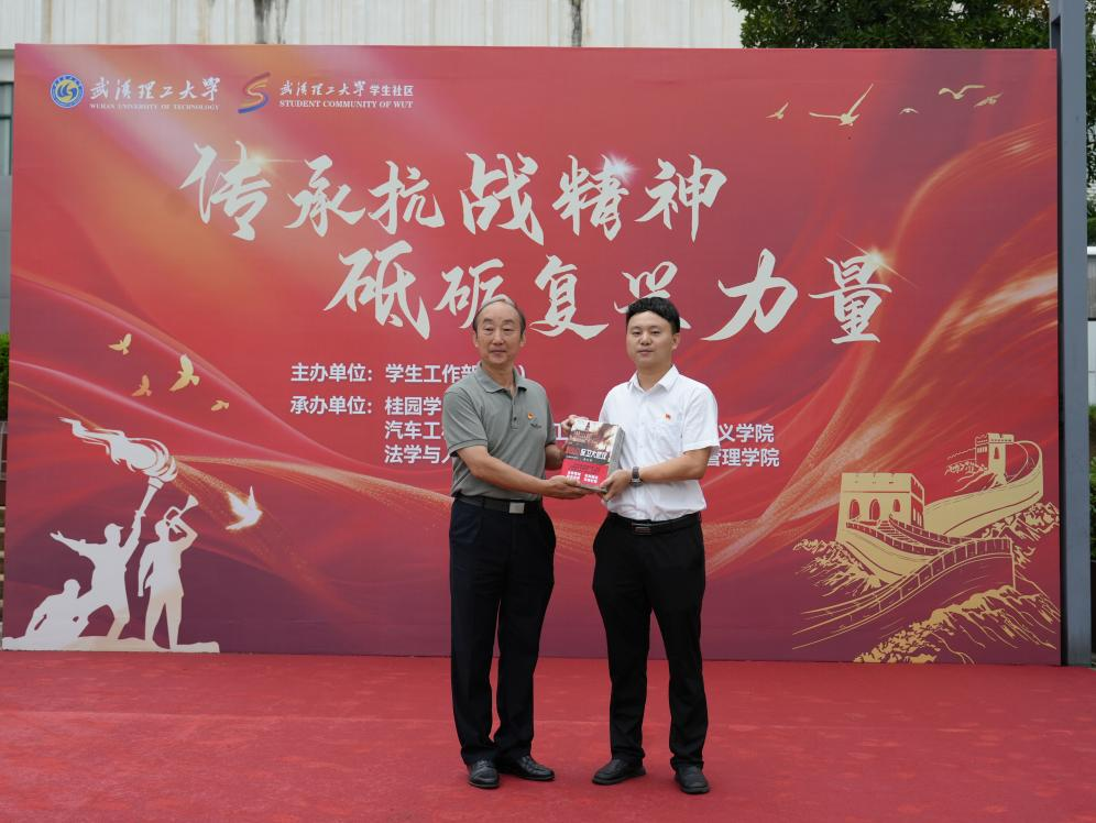老战士报告团向桂园学生社区赠送《保卫大武汉》丛书,寓意着先辈荣光的薪火相传,激励青年学生以实际行动践行爱国主义精神。