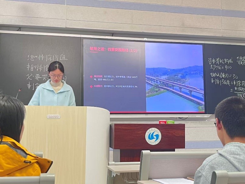 关注到自主发展与南南合作的实践探索,张悦阳同学则提出四重突围路径:以产业升级夯实“硬实力”,如中老铁路促进区域联通;以区域合作提升“群实力”,如RCEP推动贸易增长;以文化自信增强“软实力”,如中国“人类命运共同体”理念的全球传播;以数字共赢锻造“联实力”,如东非光纤网络降低对外依赖。她强调,这些实践表明“全球南方”正通过集体行动将发展命运掌握在自己手中。