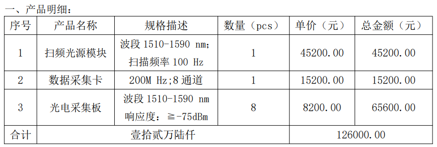 一、项目名称:扫频光源模块、数据采集卡和光电采集板