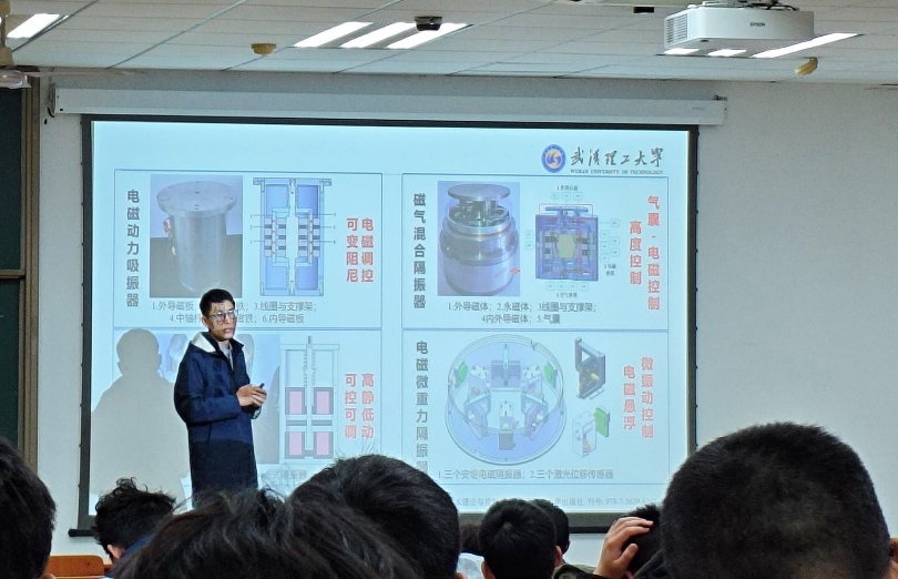 讲座中,宋春生教授以深入浅出的方式,为大家带来了关于磁悬浮隔振技术的精彩讲解。通过丰富详实的数据与案例,宋春生教授将复杂的科学知识生动形象地展示在同学面前,让大家对当今技术的方方面面有了更清晰的认识。