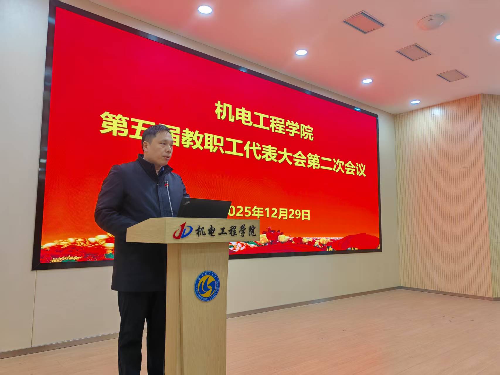12月29日下午,机电工程学院第五届教职工代表大会第二次会议在学院国良楼报告厅召开。学院党政领导班子全体成员、教代会正式代表参加,大会按开幕式、代表团分组讨论、大会主席团会议和闭幕式四个环节进行,开幕式由辜志强书记主持。