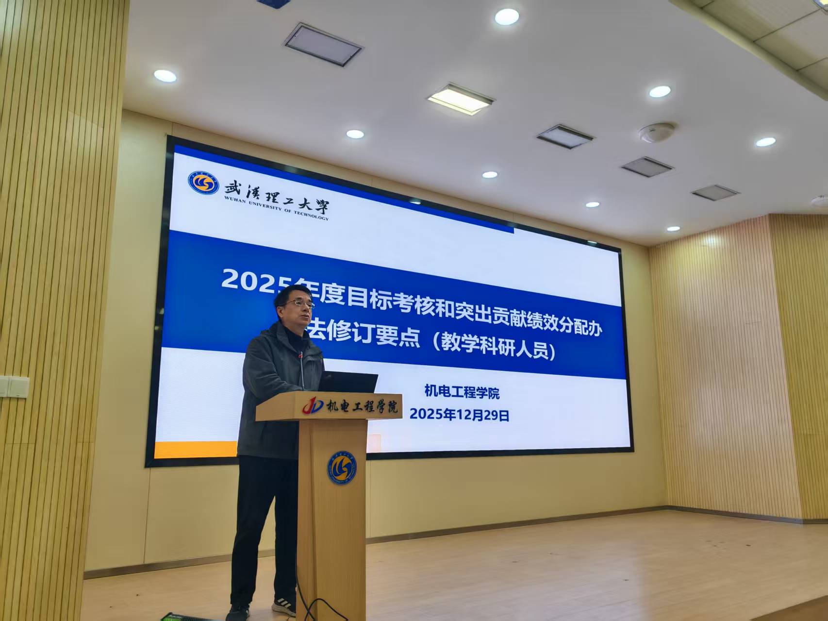 吴飞副院长就《机电学院教学科研人员目标业绩考核办法》等文件制度方案作修订说明。